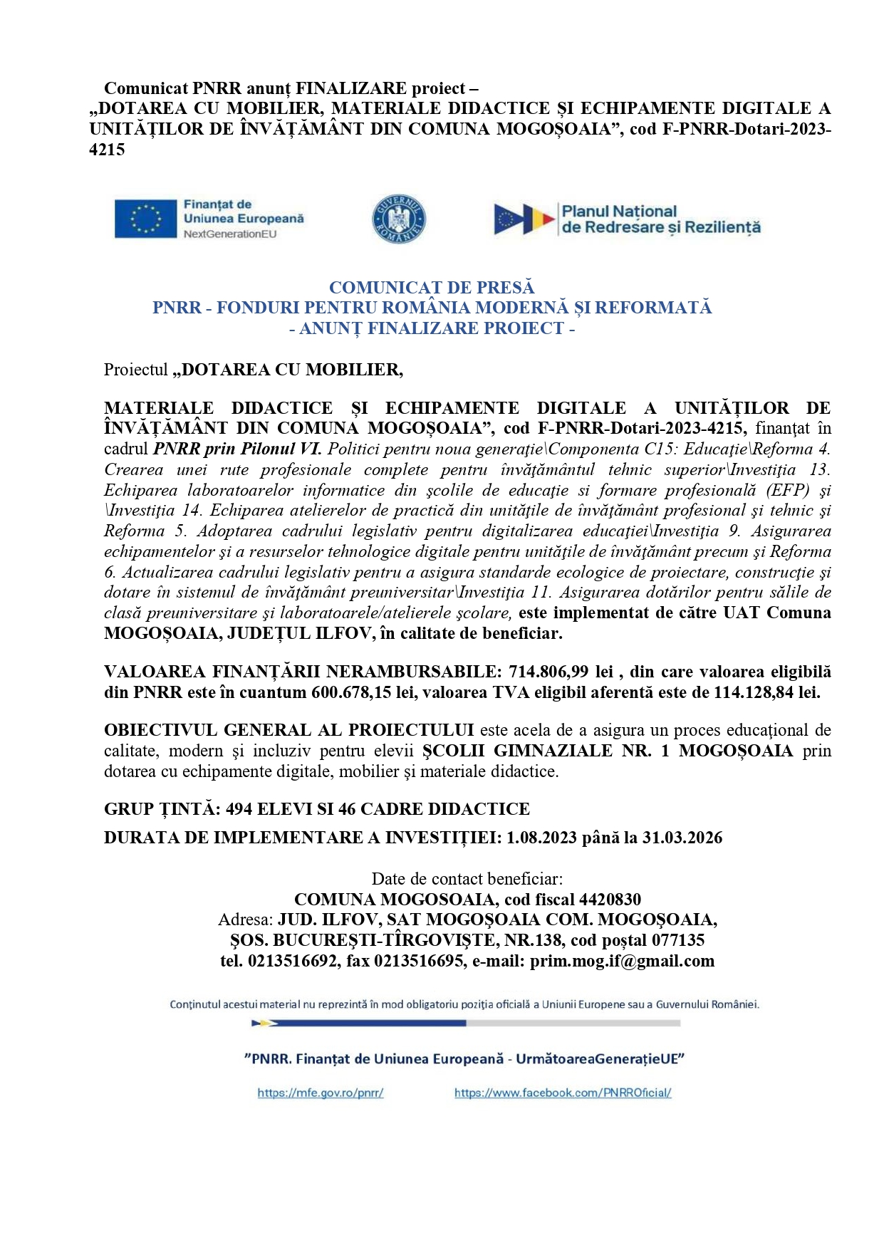 Servicii și afaceriComunicat finalizare proiect – Mogoșoaia de Redactia - 06/04/2026 -/1 by Published: 06/04/2026 (2 săptămâni ago) Category Servicii și afaceri Show Contact Information