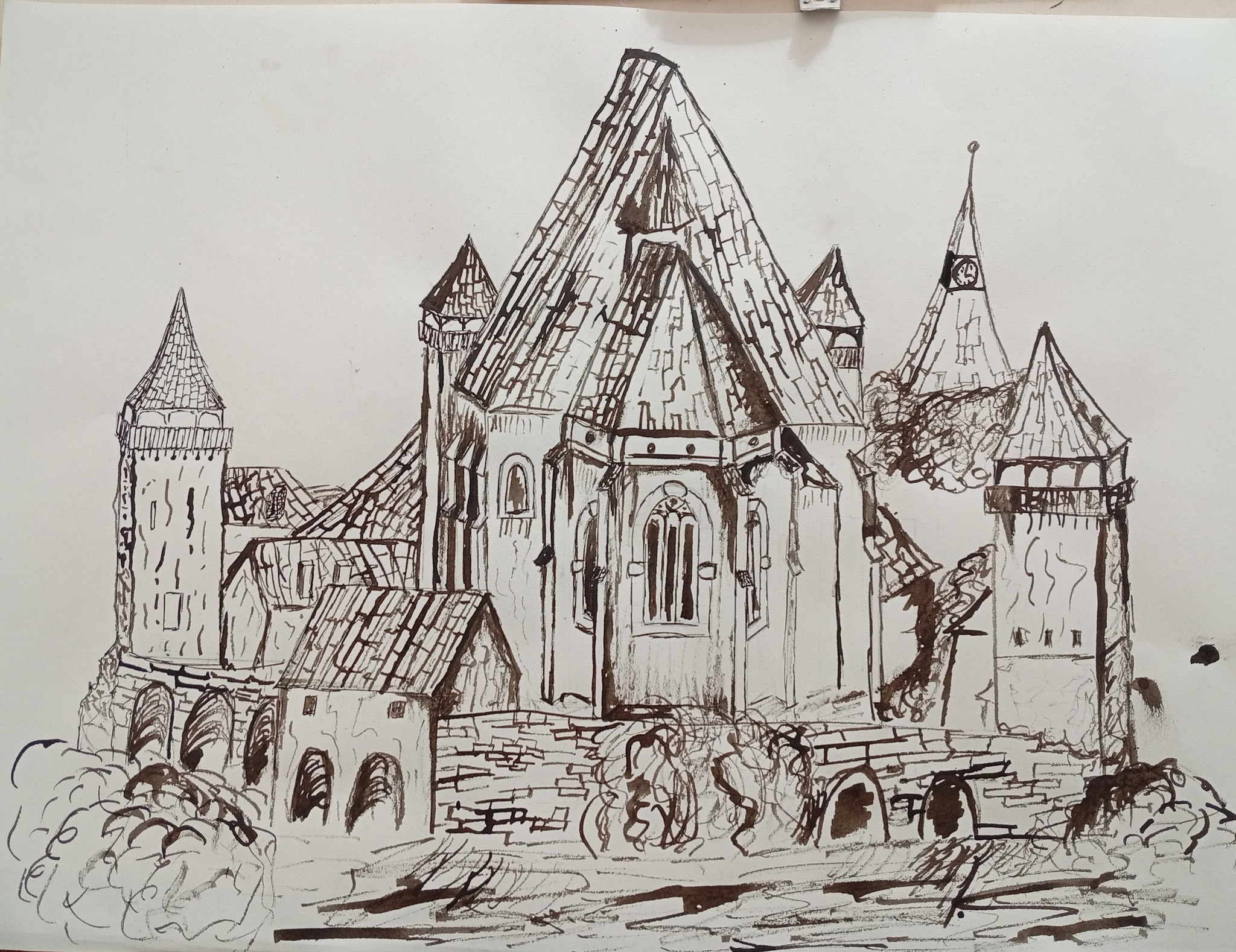 Expoziția reunește lucrările elevilor coordonați de prof. Mihnea Badea, realizate în cadrul unui proiect educațional și artistic ce explorează tematica patrimoniului arhitectural