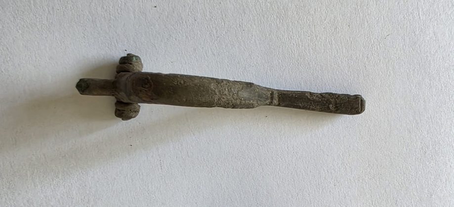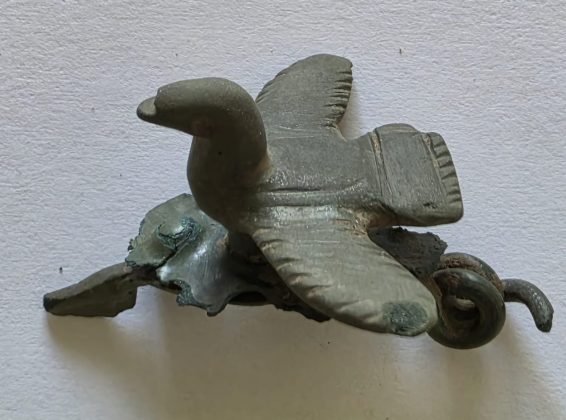Printre obiecte se află trei fibule, dintre care două sunt deosebit de interesante. Prima piesă este o fibulă avimorfă din bronz, din perioada romană, probabil datând din sec. al II-lea d.Hr. Aceasta reprezintă o pasăre în zbor, cu aripile trase spre spate. Forma este foarte bine realizată, aerodinamică, cu pene incizate pe aripi și pe coadă. Piesa prezintă o patină verde-maronie fină și păstrează mecanismul cu arc, însă acul de prindere lipsește. A doua piesă este o fibulă digitată fragmentară din bronz, o descoperire interesantă chiar dacă nu s-a păstrat integral. Specialiștii ar putea identifica această piesă drept fibulă slavă decorată cu motive florale și spirale, specifică primei jumătăți a secolului al VII-lea.
