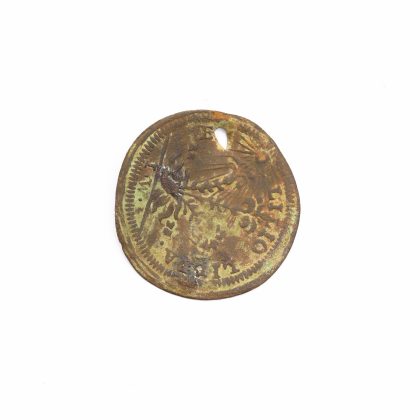 Detectoriștii au descoperit și câteva monede, dintre care una pare a fi un jeton francez. Pe avers apare bustul regelui Ludovic al XIV-lea al Franței (1643–1715), însoțit de inscripția „LVD XIV REX”, iar pe revers se observă un grup de flori de crin, simbol heraldic al Franței, alături de legenda ”LILIORUM”, iar în partea inferioară inițialele ”P.D.”, probabil ale gravorului sau ale atelierului monetar. Astfel de jetoane erau utilizate în secolele XVII–XVIII la curtea regală franceză sau de către Trezoreria Regală pentru contabilitate, jocuri sau ca piese comemorative. Piesa găsită prezintă și un mic orificiu, ceea ce sugerează că a fost purtată ulterior ca medalion.