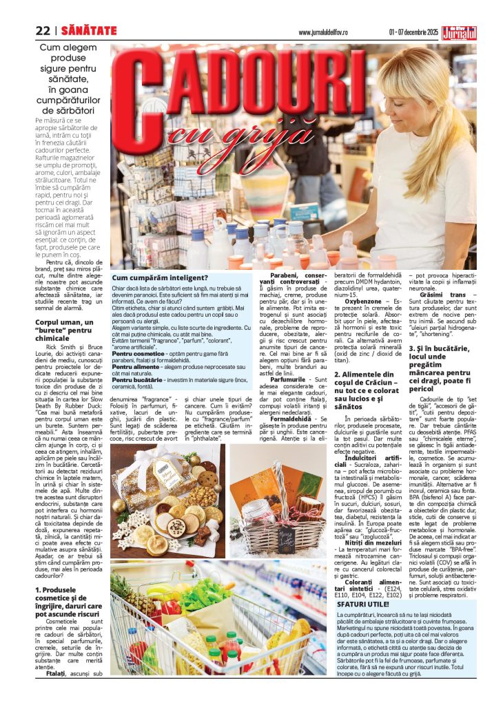 Pe măsură ce se apropie sărbătorile de iarnă, intrăm cu toții în frenezia căutării cadourilor perfecte. Rafturile magazinelor se umplu de promoții, arome, culori, ambalaje strălucitoare. Totul ne îmbie să cumpărăm rapid, pentru noi și pentru cei dragi. Dar tocmai în această perioadă aglomerată riscăm cel mai mult să ignorăm un aspect esențial: ce conțin, de fapt, produsele pe care le punem în coș. Pentru că, dincolo de brand, preț sau miros plăcut, multe dintre alegerile noastre pot ascunde substanțe chimice care afectează sănătatea, iar studiile recente atrag un semnal de alarmă.