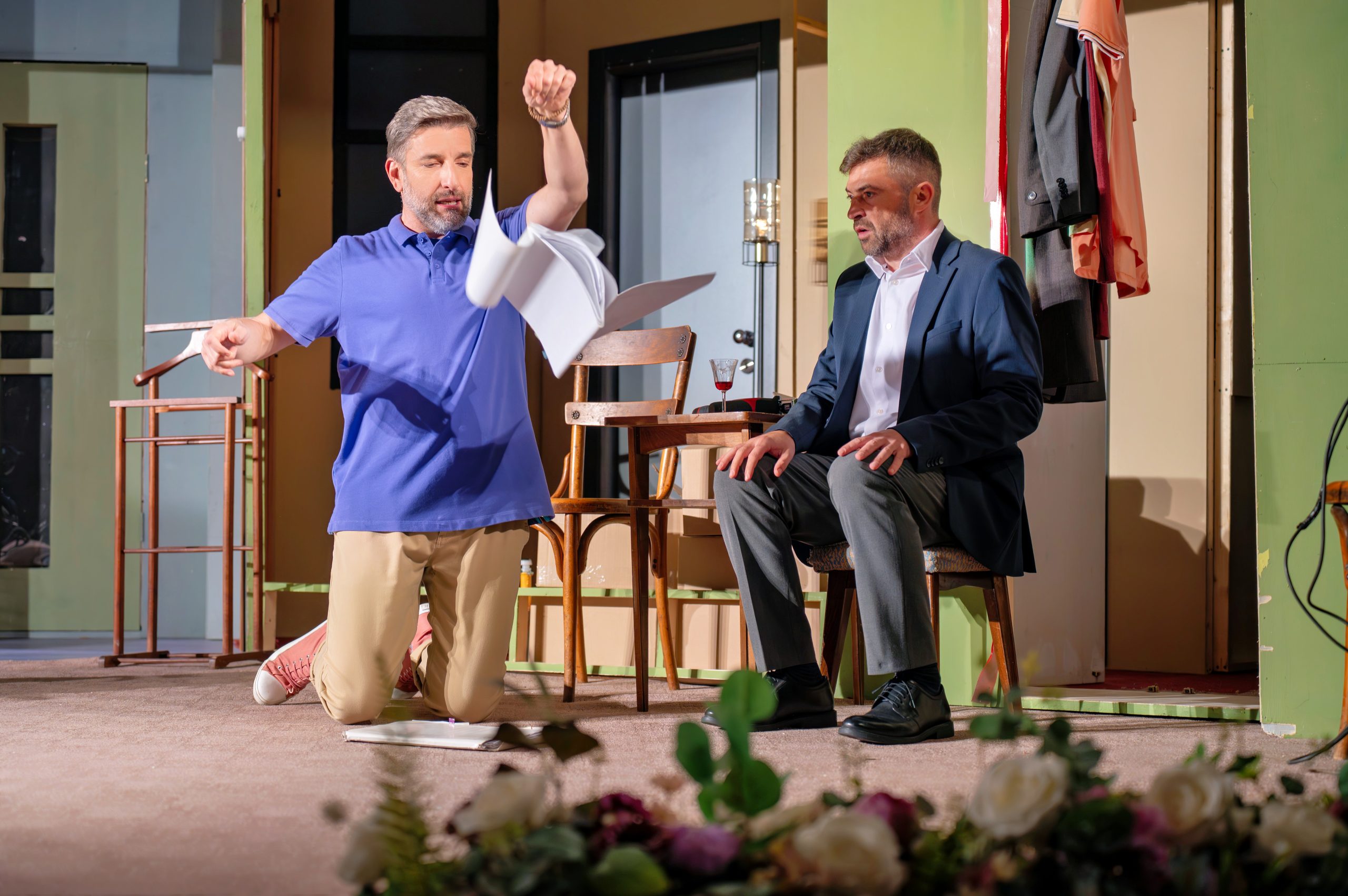 Comedia „Te vreau”, scrisă de Sébastien Castro, a fost prezentată într-o atmosferă energică, construită în jurul unui text alert și al unor situații care au provocat reacții continue în rândul spectatorilor. Piesa prezintă povestea care a pornit de la un mesaj trimis greșit unei foste iubite, moment care a declanșat o avalanșă de încurcături alimentate de apariția noii partenere și de intervențiile intempestive ale unui vecin curios, iar ritmul alert a menținut publicul conectat la fiecare replică. În sala plină, reacțiile au confirmat că jocul actorilor Silviu Biriş, Lucian Ghimişi, Gavril Pătru, Cosmin Pană, Alexandra Sălceanu, Gabriela Porumbacu și Andreea Telehoi a funcționat impecabil, iar fiecare scenă a construit un relief comic care a alternat între tensiuni, situații neașteptate și momente de improvizație subtilă. Scenografia Andadei Chiriac a susținut dinamica piesei, iar regia lui