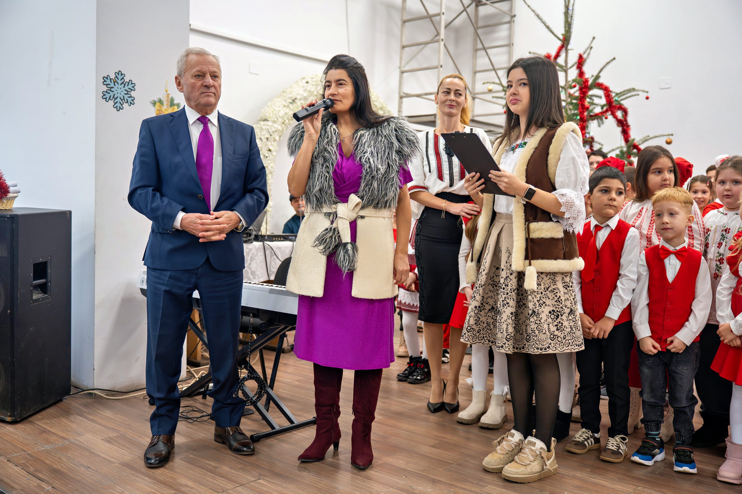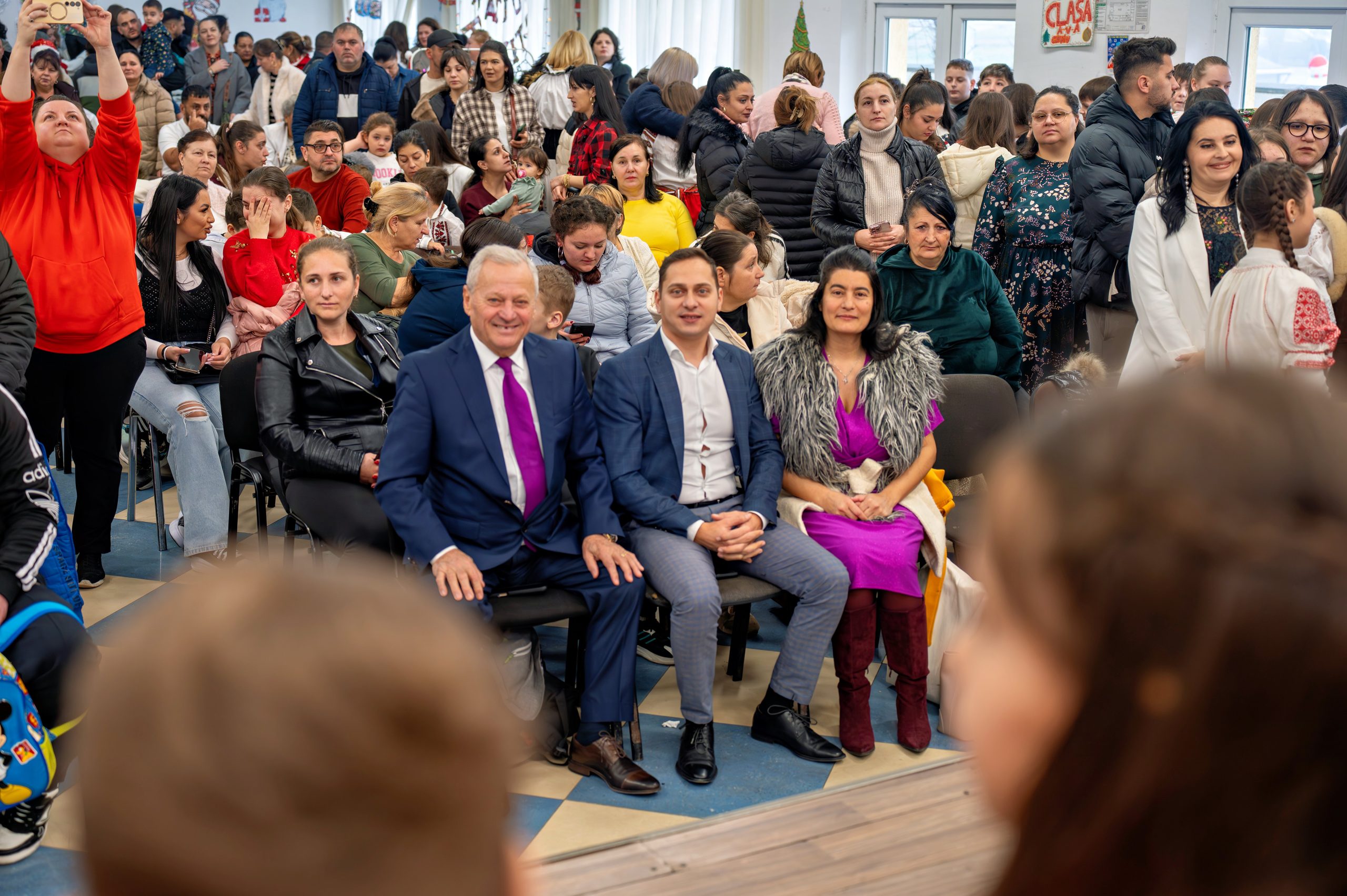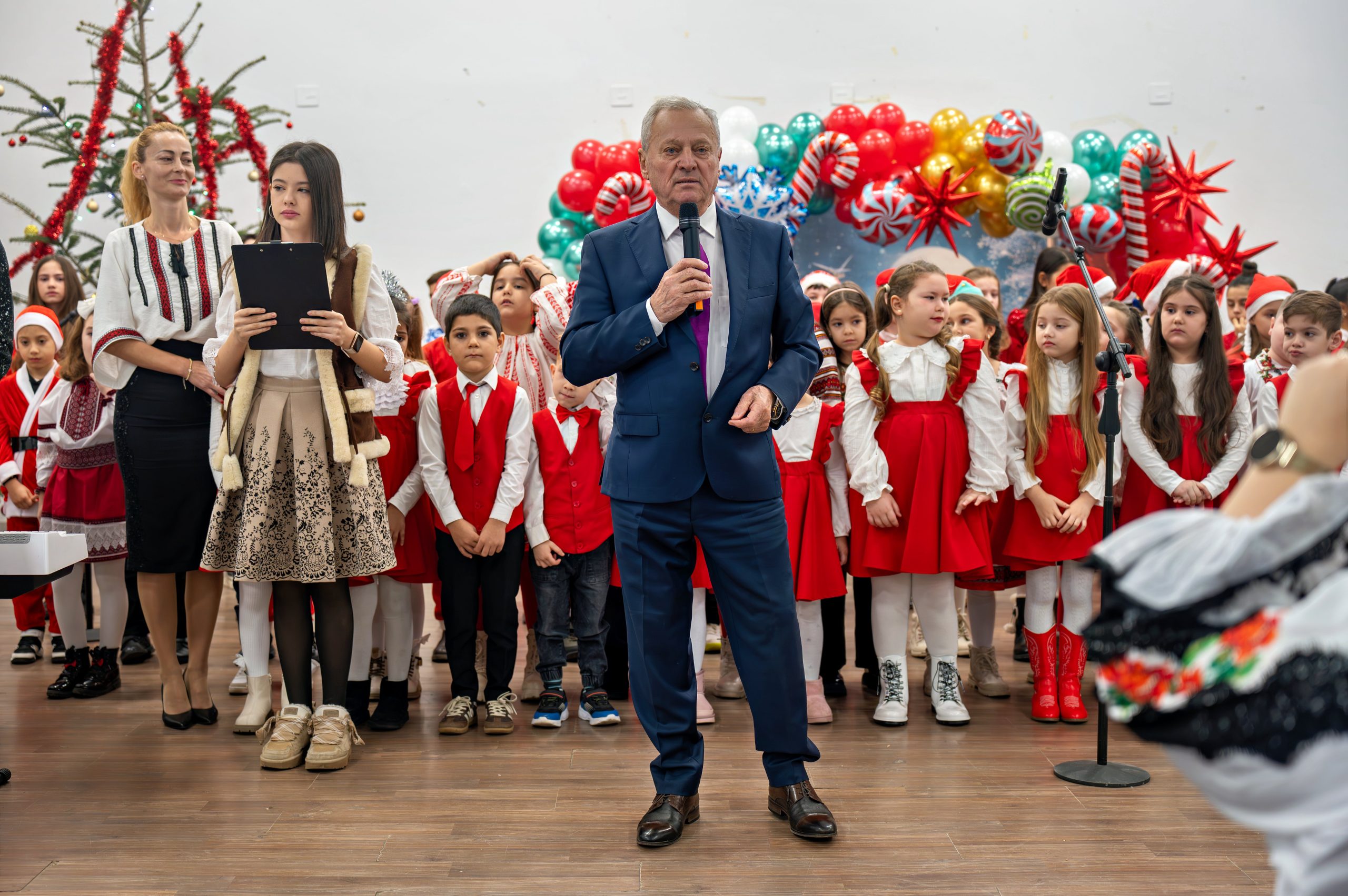 ”Este o mare bucurie să văd sala plină și atâtea suflete împreună. Îi mulțumim Bunului Dumnezeu pentru sănătate și pentru acești copii minunați, care sunt viitorul nostru. Mulțumesc doamnei director și tuturor cadrelor didactice care s-au implicat cu atâta dăruire. Tot ce s-a făcut astăzi pentru acești copii s-a realizat cu ajutorul unor sponsori, prieteni de-ai mei, oameni cu inimă mare cărora le mulțumesc din toată inima. Vă doresc tuturor sănătate, liniște și binecuvântare în anul care vine”, a spus primarul Ion Samoilă care s-a lăsat colindat de glasurile copiilor, rămânând alături de ei pe tot parcursul evenimentului și ascultând cu emoție cântecele și poeziile care au adus în sală bucuria Nașterii Domnului. Viceprimarul Gheorghe Ghiulea a completat atmosfera cu un mesaj cald, adresat celor prezenți. ”Felicit organizatorii, în mod special pe doamna director Alina Mihaela Florea, cadrele didactice și pe toți copiii care ne-au umplut inimile de bucurie. Vă doresc să aveți sărbători luminate, pline de iubire și pace. Să fie liniște în casele dumneavoastră. Sănătate și un An Nou mai bun pentru toți”, a spus Gheorghe Ghiulea, viceprimarul comunei Gruiu.