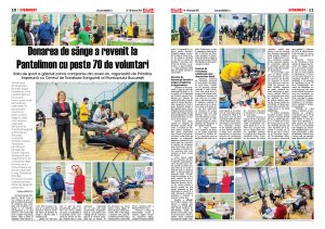 Sala de sport din Bulevardul Biruinței, orașul Pantelimon, a fost transformată, luni, 26 ianuarie, într-un punct mobil de transfuzie, unde peste 70 de persoane s-au înscris pentru a dona sânge în cadrul unei campanii organizate de Centrul de Transfuzie Sanguină al Municipiului București, cu sprijinul Primăriei orașului Pantelimon, prin Direcția de Asistență Socială. Acțiunea, desfășurată între orele 8.30 și 12.30, a fost prima ediție din acest an și a noua campanie de donare organizată în oraș, Pantelimon fiind deja recunoscut ca punct constant pe harta donării de sânge din județul Ilfov.