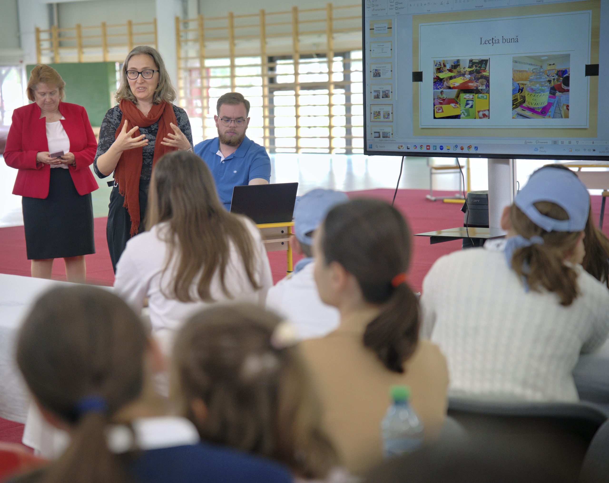 Sub coordonarea Marianei Banu, directoarea școlii și profesoară de educație tehnologică, unitatea de învățământ a devenit un adevărat laborator de inovație pedagogică și colaborare comunitară. Prima parte a evenimentului a fost dedicată diseminării rezultatelor proiectelor europene derulate în anul școlar 2024-2025.