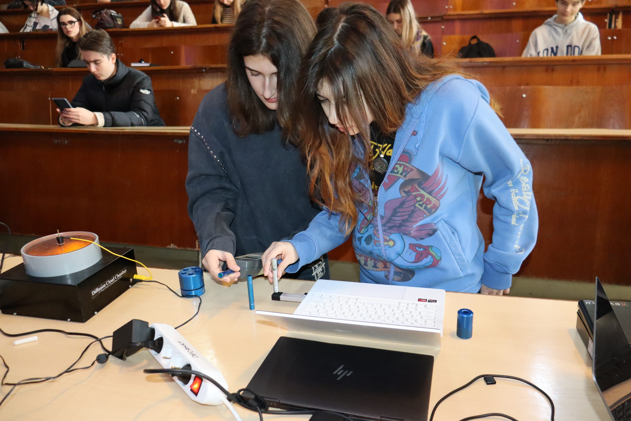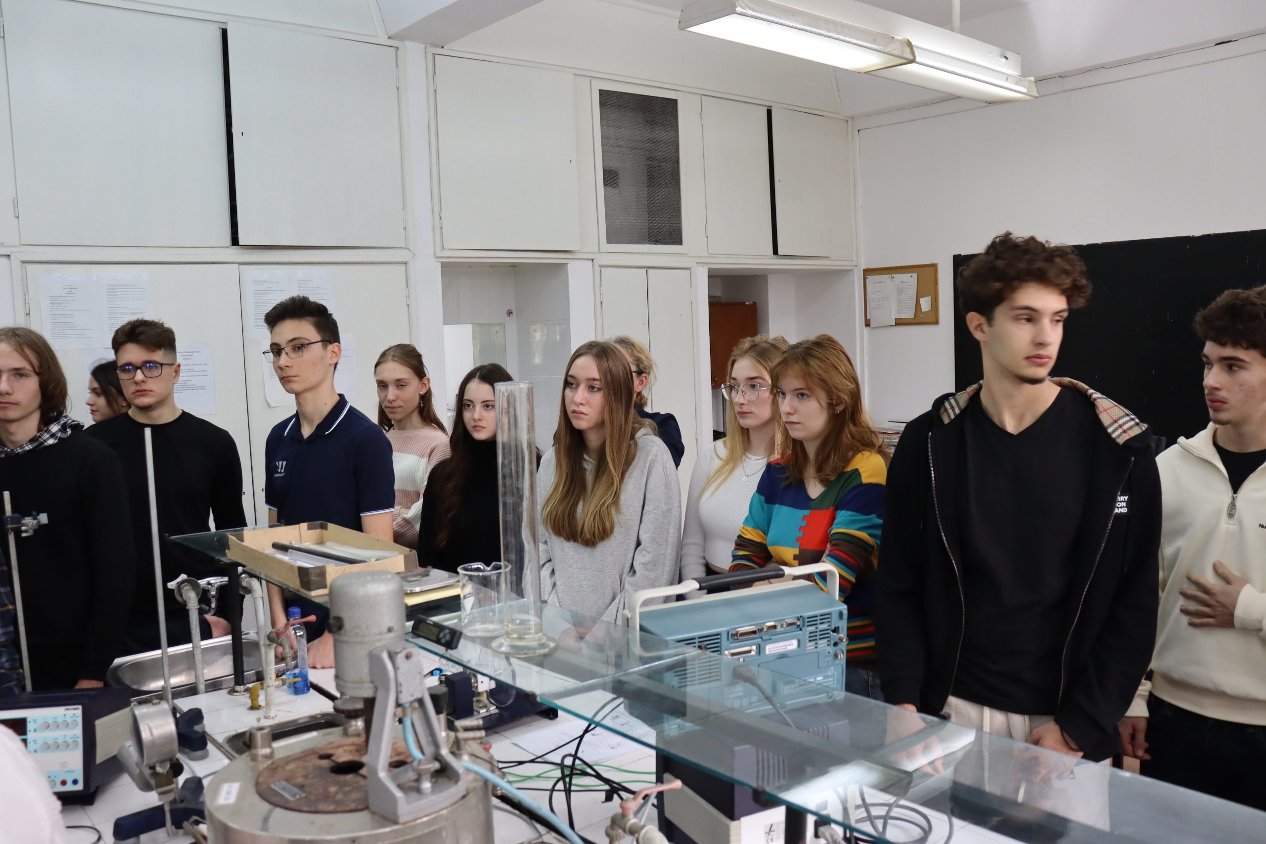 În Laboratorul de fizică moleculară, liceenii au aflat cum funcționează motoarele termice, cum se mișcă moleculele în gaze și care sunt proprietățile materialelor. Au descoperit cum funcționează un motor Stirling, ce este vâscozitatea sau cum influențează temperatura mișcarea moleculelor, iar în Laboratorul de fizică nucleară s-au familiarizat cu noțiuni legate de principalele tipuri de radiații nucleare, caracteristicile acestora, modul în care interacționează cu materia și metodele prin care pot fi detectate cu aparatura disponibilă. Au aflat că aceste radiații sunt utilizate în viața de zi cu zi, în diverse aplicații practice, precum: datarea obiectelor vechi, utilizată în arheologie și geologie pentru stabilirea vârstei artefactelor și fosilelor, în radioterapie și imagistică medicală – radiațiile nucleare fiind esențiale în tratarea cancerului și în diagnosticarea precisă a afecțiunilor sau în agricultură și alimentație – unde sunt folosite pentru controlul dăunătorilor, tratarea și conservarea alimentelor sau pentru sterilizare. Tot aici, elevii au avut ocazia să vizualizeze urmele particulelor alfa și beta în camera de difuzie, un experiment fascinant, care permite observarea directă a comportamentului radiațiilor.