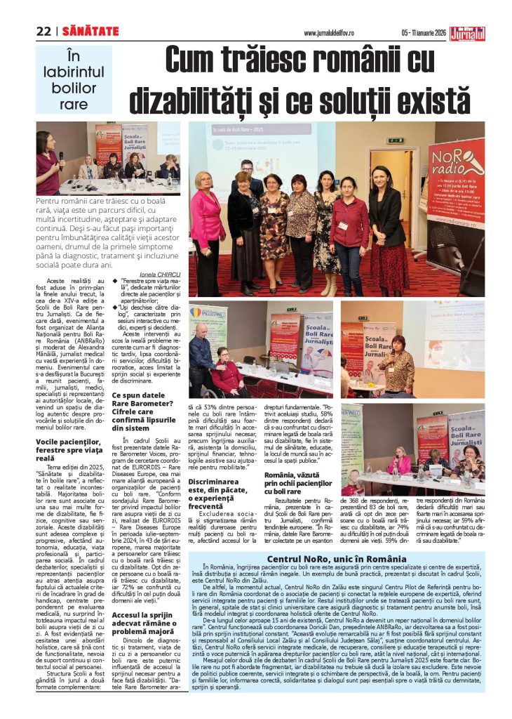 Aceste realități au fost aduse în prim-plan la finele anului trecut, la cea de-a XIV-a ediție a Școlii de Boli Rare pentru Jurnaliști. Ca de fiecare dată, evenimentul a fost organizat de Alianța Națională pentru Boli Rare România (ANBRaRo) și moderat de Alexandra Mănăilă, jurnalist medical cu vastă experiență în domeniu. Evenimentul care s-a desfășurat la București a reunit pacienți, familii, jurnaliști, medici, specialiști și reprezentanți ai autorităților locale, devenind un spațiu de dialog autentic despre provocările și soluțiile din domeniul bolilor rare.