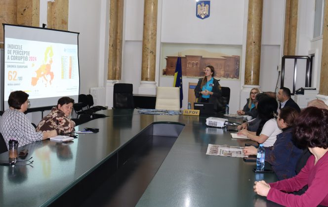 Comisar-șef de poliție Crainiciuc Florentina-Mihaela și agent principal de poliție Bîltag Ramona din cadrul DGA – DAMBJI au făcut referire la date ale Eurobarometrului special 548/2024 în cadrul cărora s-a analizat atitudinea cetățenilor privind corupția în Uniunea Europeană. S-a menționat că 75% dintre români consideră corupția o problemă larg răspândită în țară și, cu toate acestea, mulți cetățeni aleg să nu raporteze cazurile de corupție din diverse motive, cum ar fi dificultatea de a dovedi faptele (29%), teama că persoanele implicate nu vor fi pedepsite (23%) sau lipsa protecției pentru denunțători (23%).