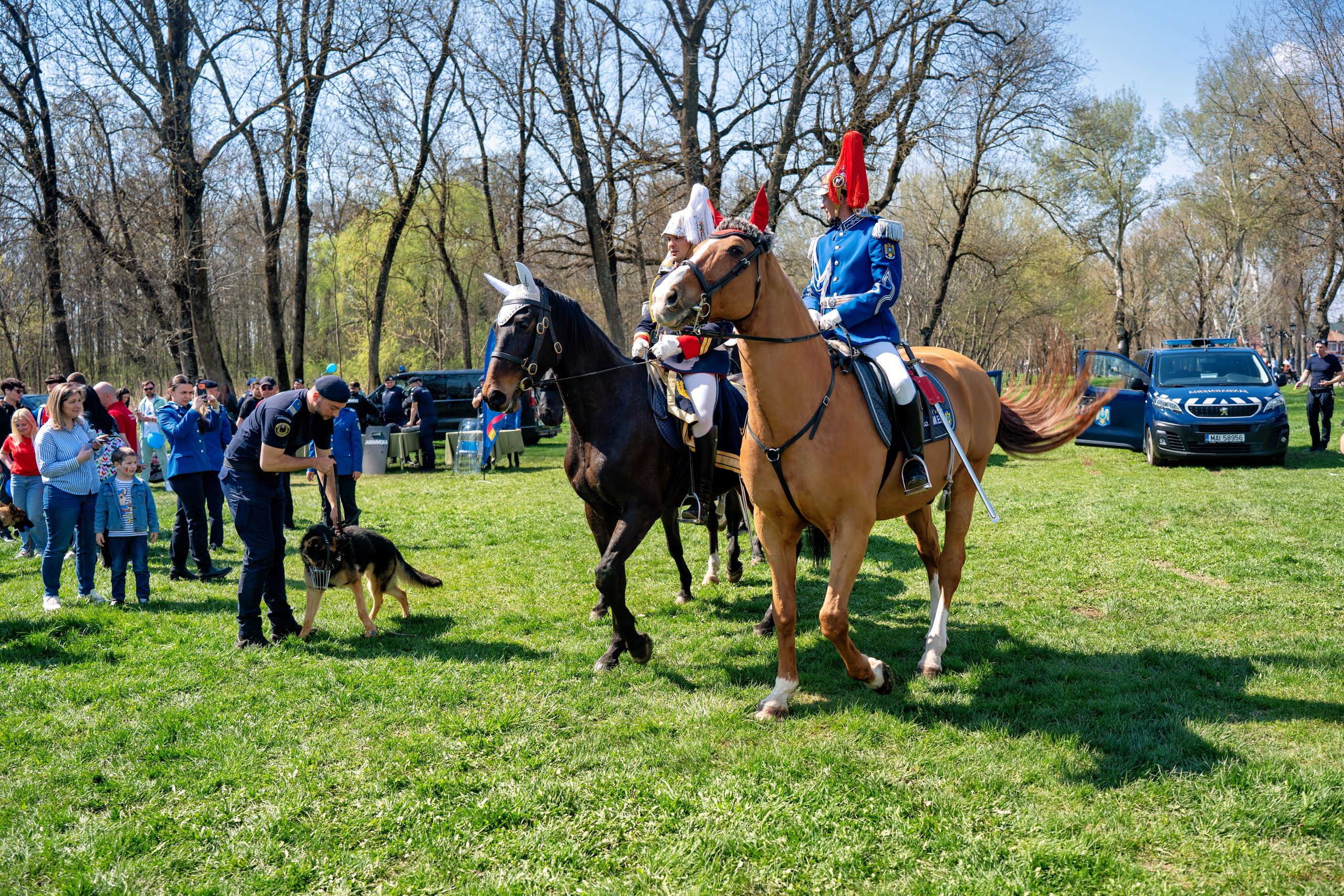 Cavaleria și câinii specializați au adunat nenumărați spectatori. Unitatea de cavalerie, pusă la dispoziție prin colaborarea cu Direcția Generală de Jandarmi a Municipiului București (DGJMB), a adus patru cai și un efectiv de jandarmi în ținuta specifică. Câinii de serviciu, împărțiți între câini de urmă și câini de intervenție, fiecare specializat pe un anumit mod de acțiune, au fost prezentați cu echipamentele și înhămarea specifice, expuse pe o masă separată tocmai pentru a putea fi examinate îndeaproape. Copiii au fost, invariabil, cei mai entuziaști. Micuții au fotografiat câinii, au stat lângă cai și și-au imaginat cu seriozitate că și ei vor purta cândva uniforma bleu-jandarm. Alți copii au testat sirenele autoturismelor de
