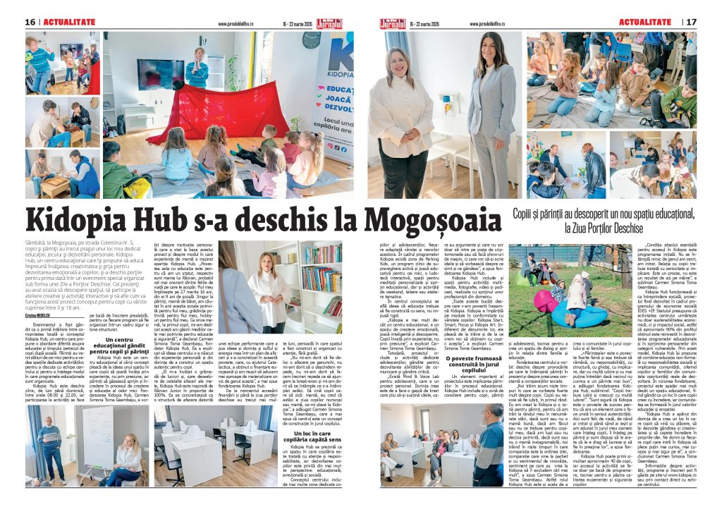 Sâmbătă, la Mogoșoaia, pe strada Colentina nr. 5, copiii și părinții au trecut pragul unui loc nou dedicat educației, jocului și dezvoltării personale. Kidopia Hub, un centru educațional care își propune să aducă împreună învățarea, creativitatea și grija pentru dezvoltarea emoțională a copiilor, și-a deschis porțile pentru prima dată într-un eveniment special organizat sub forma unei Zile a Porților Deschise. Cei prezenți au avut ocazia să descopere spațiul, să participe la ateliere creative și activități interactive și să afle cum va funcționa acest proiect conceput pentru copii cu vârste cuprinse între 3 și 18 ani.