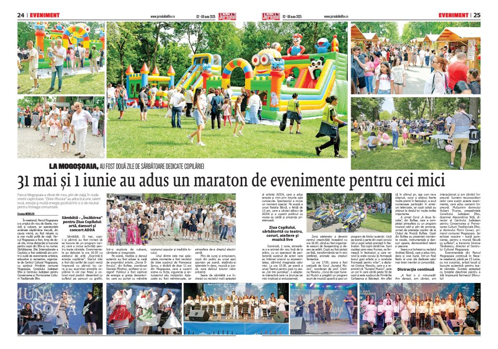 În weekend, Parcul Mogoșoaia s-a umplut din nou de râsete, muzică și culoare, iar spectacolele amânate săptămâna trecută, din cauza vremii, au fost reluate cu și mai multă poftă de viață. Parcul Mogoșoaia a fost, timp de două zile, inima distracției și bucuriei pentru copiii din Ilfov și nu numai. Sărbătoarea Zilei Internaționale a Copilului a fost celebrată aici printr-o suită de evenimente artistice, educative și recreative, organizate de Centrul Cultural Mogoșoaia, cu sprijinul Primăriei comunei Mogoșoaia, Consiliului Județean Ilfov și Centrului Județean pentru Conservarea și Promovarea Culturii Tradiționale Ilfov.