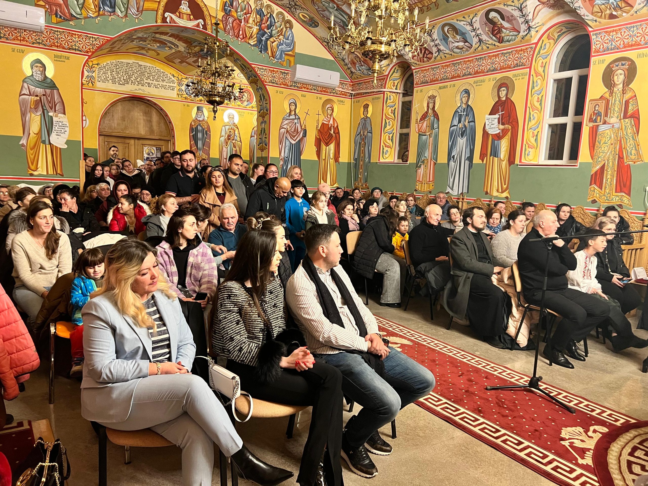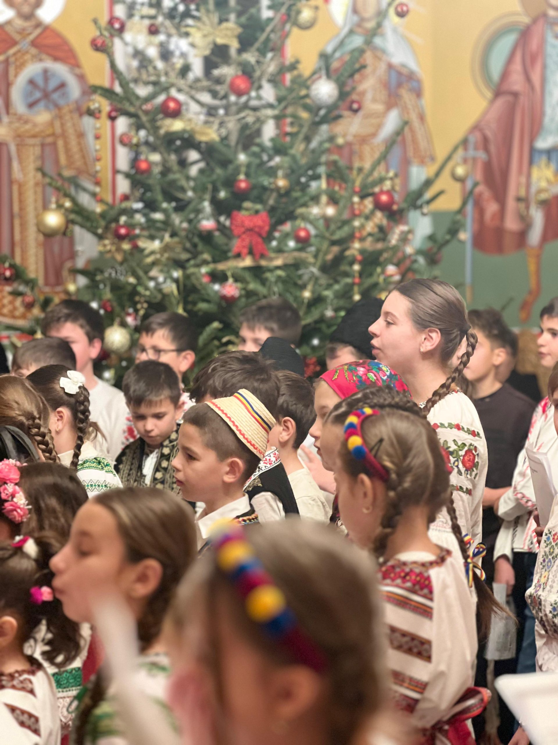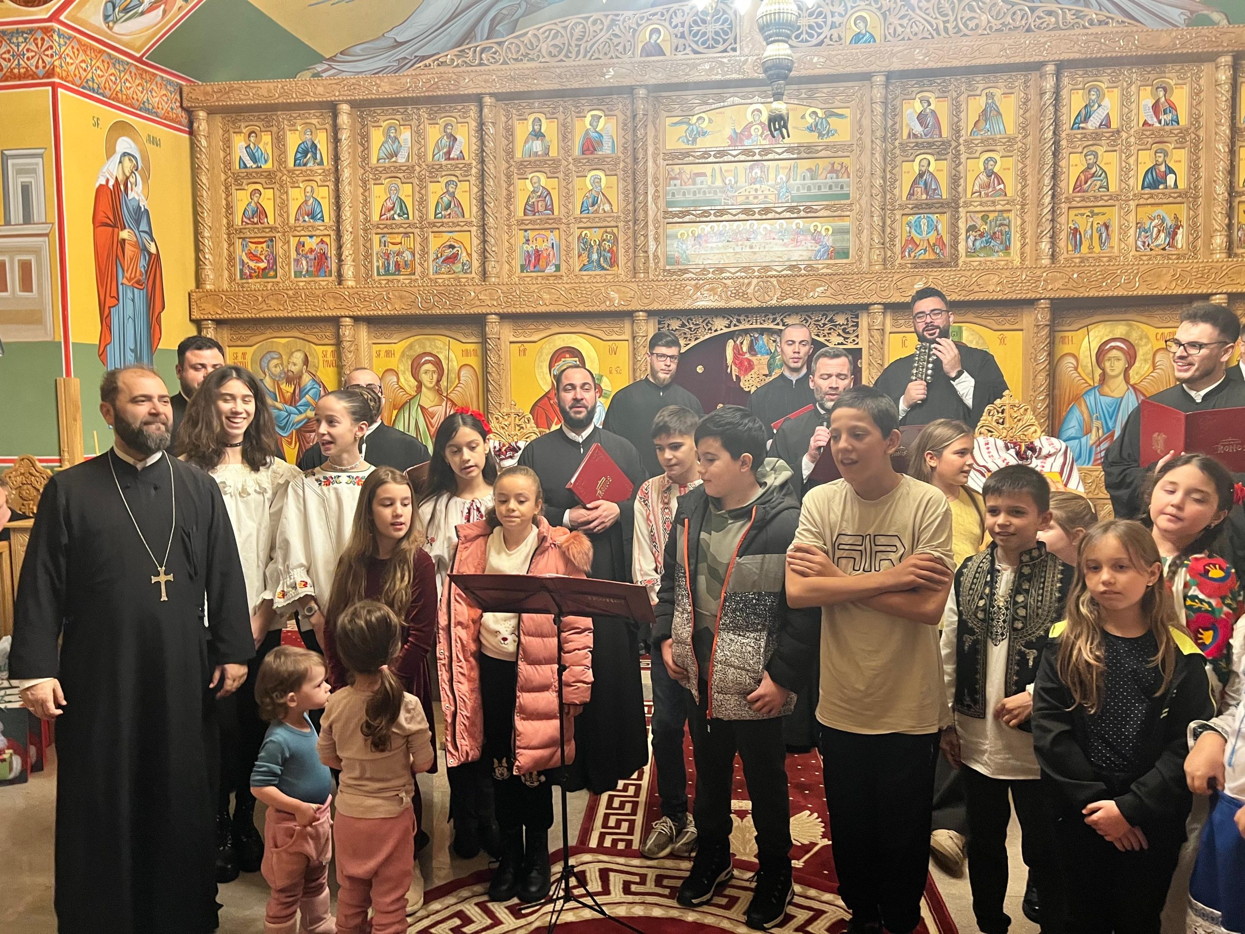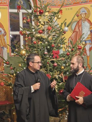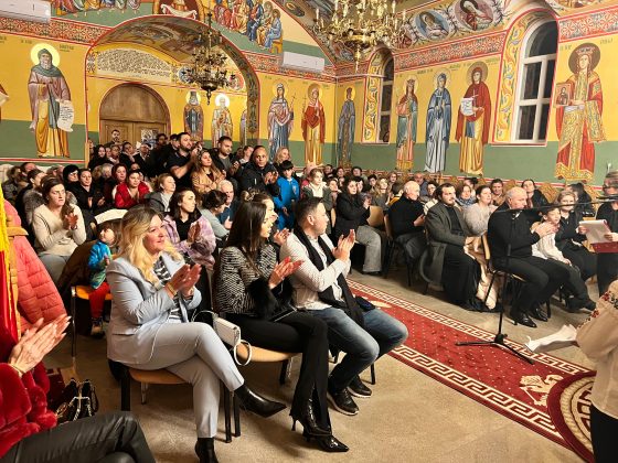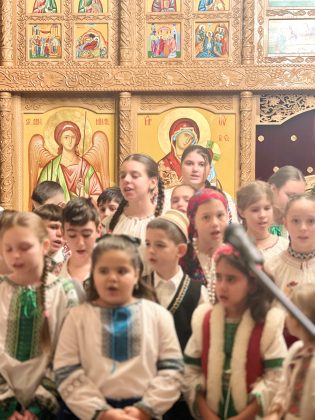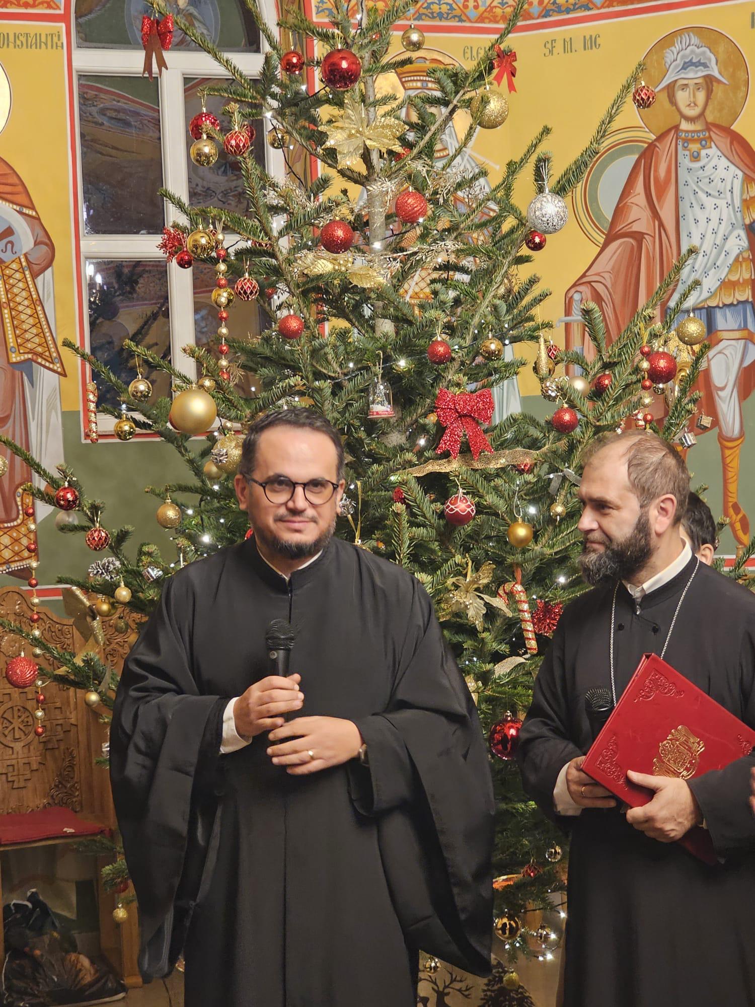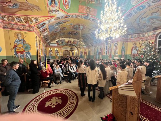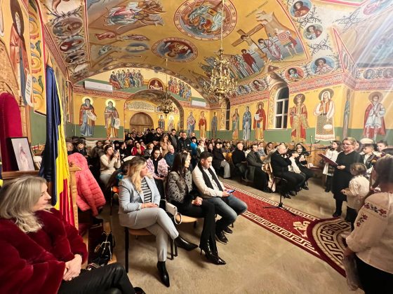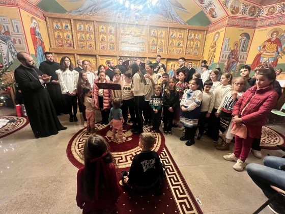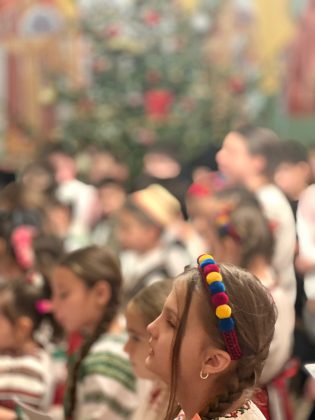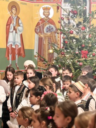 În lumina lină a lumânărilor și în atmosfera caldă, familială, specifică perioadei, credincioșii au simțit bucuria unei seri în care omul și divinitatea s-au întâlnit prin glasuri curate, emoție și rugăciune. Sub păstorirea blândă și jertfelnică a părintelui paroh Daniel Cergan, biserica a fost în acea seară un adevărat adăpost al sufletelor. În seninătatea lăcașului, colindele nu s-au mai auzit numai cu urechea, ci au fost simțite adânc în inimă, ca niște rugăciuni înălțate la Cer. Glasurile copiilor s-au ridicat curate și luminoase, asemenea unor lumânări aprinse, răspândind speranță, pace și acea bucurie simplă care vindecă și apropie oamenii unii de alții. Căci, peste o sută de copii ai Școlii Gimnaziale Nr. 1 din Grădiștea au umplut biserica de viață, emoție și puritate. Cu obrajii îmbujorați și ochii strălucind de emoție, au colindat cu toată sinceritatea sufletelor lor fragede. Cântecele lor au fost fărâme de lumină, versurile devenind mărturisiri curate de credință. În glasurile lor se regăseau copilăria, nădejdea și frumusețea unui Crăciun așa cum ar trebui să fie: simplu, curat și plin de iubire, privit prin ochi nevinovați. În această atmosferă de liniște sfințitoare și înălțare sufletească, Grupul Psaltic TRONOS al Patriarhiei Române a adus o profunzime aparte, asemenea unei respirații adânci a Bisericii însăși. Sub îndrumarea părintelui arhidiacon Mihail Bucă, colindele au fost rostite cu o măiestrie desăvârșită și o trăire care a coborât liniștea peste întreaga biserică. Vocile lor, așezate și puternice, au umplut bolțile de un fior duhovnicesc, iar timpul părea că se oprește, lăsând loc doar rugăciunii cântate și lacrimilor tăcute. A fost acel moment rar în care cuvintele nu mai sunt necesare, pentru că muzica vorbește direct inimii.