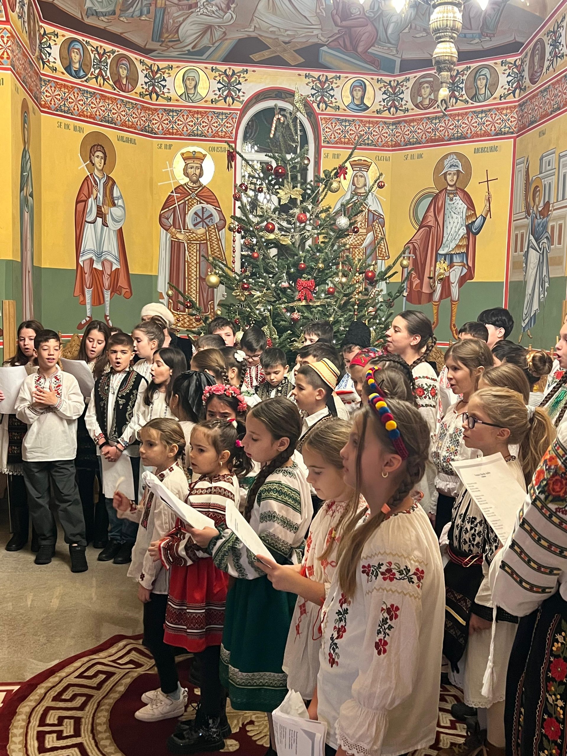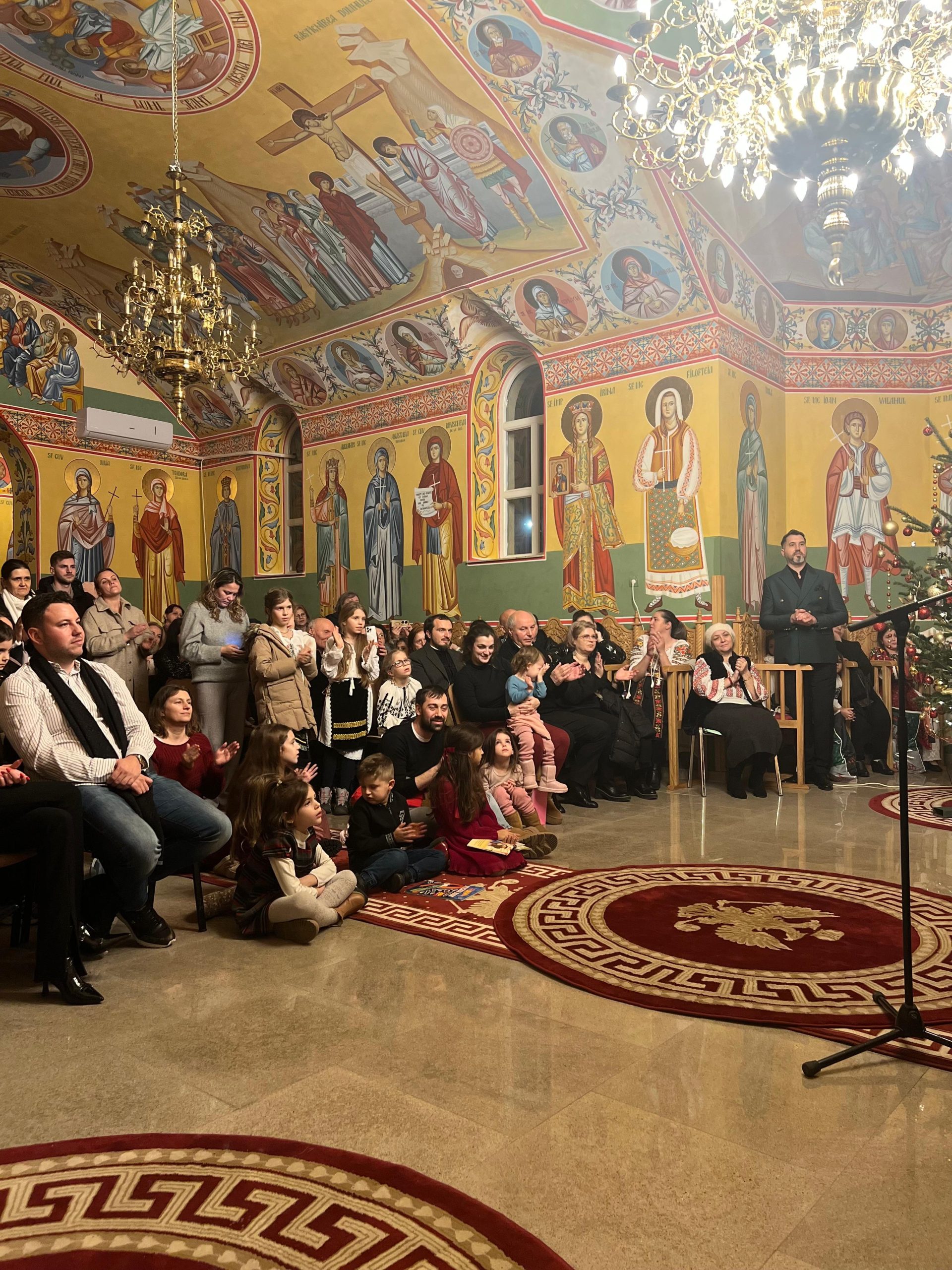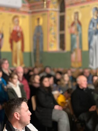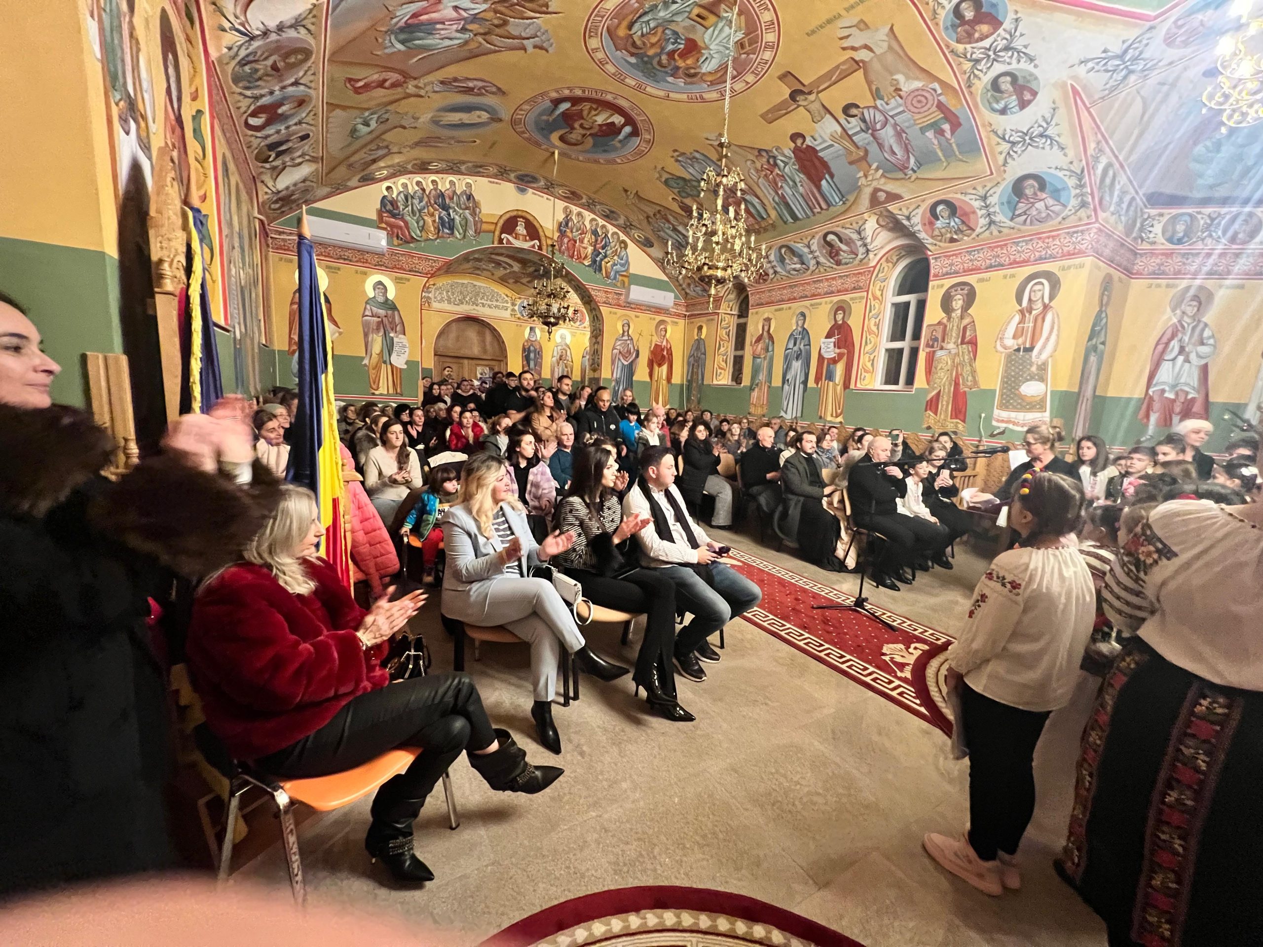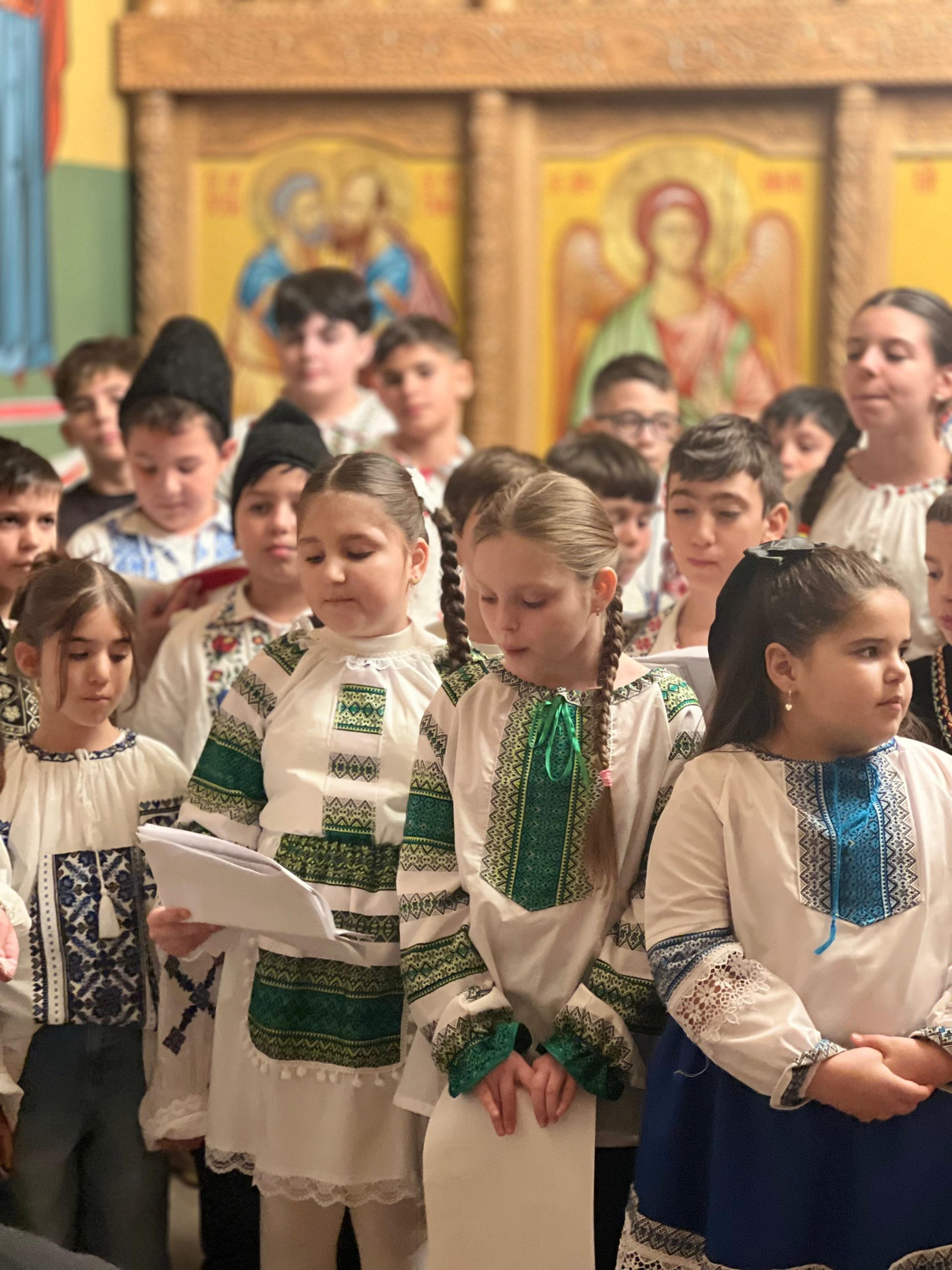 În lumina lină a lumânărilor și în atmosfera caldă, familială, specifică perioadei, credincioșii au simțit bucuria unei seri în care omul și divinitatea s-au întâlnit prin glasuri curate, emoție și rugăciune. Sub păstorirea blândă și jertfelnică a părintelui paroh Daniel Cergan, biserica a fost în acea seară un adevărat adăpost al sufletelor. În seninătatea lăcașului, colindele nu s-au mai auzit numai cu urechea, ci au fost simțite adânc în inimă, ca niște rugăciuni înălțate la Cer. Glasurile copiilor s-au ridicat curate și luminoase, asemenea unor lumânări aprinse, răspândind speranță, pace și acea bucurie simplă care vindecă și apropie oamenii unii de alții. Căci, peste o sută de copii ai Școlii Gimnaziale Nr. 1 din Grădiștea au umplut biserica de viață, emoție și puritate. Cu obrajii îmbujorați și ochii strălucind de emoție, au colindat cu toată sinceritatea sufletelor lor fragede. Cântecele lor au fost fărâme de lumină, versurile devenind mărturisiri curate de credință. În glasurile lor se regăseau copilăria, nădejdea și frumusețea unui Crăciun așa cum ar trebui să fie: simplu, curat și plin de iubire, privit prin ochi nevinovați. În această atmosferă de liniște sfințitoare și înălțare sufletească, Grupul Psaltic TRONOS al Patriarhiei Române a adus o profunzime aparte, asemenea unei respirații adânci a Bisericii însăși. Sub îndrumarea părintelui arhidiacon Mihail Bucă, colindele au fost rostite cu o măiestrie desăvârșită și o trăire care a coborât liniștea peste întreaga biserică. Vocile lor, așezate și puternice, au umplut bolțile de un fior duhovnicesc, iar timpul părea că se oprește, lăsând loc doar rugăciunii cântate și lacrimilor tăcute. A fost acel moment rar în care cuvintele nu mai sunt necesare, pentru că muzica vorbește direct inimii.