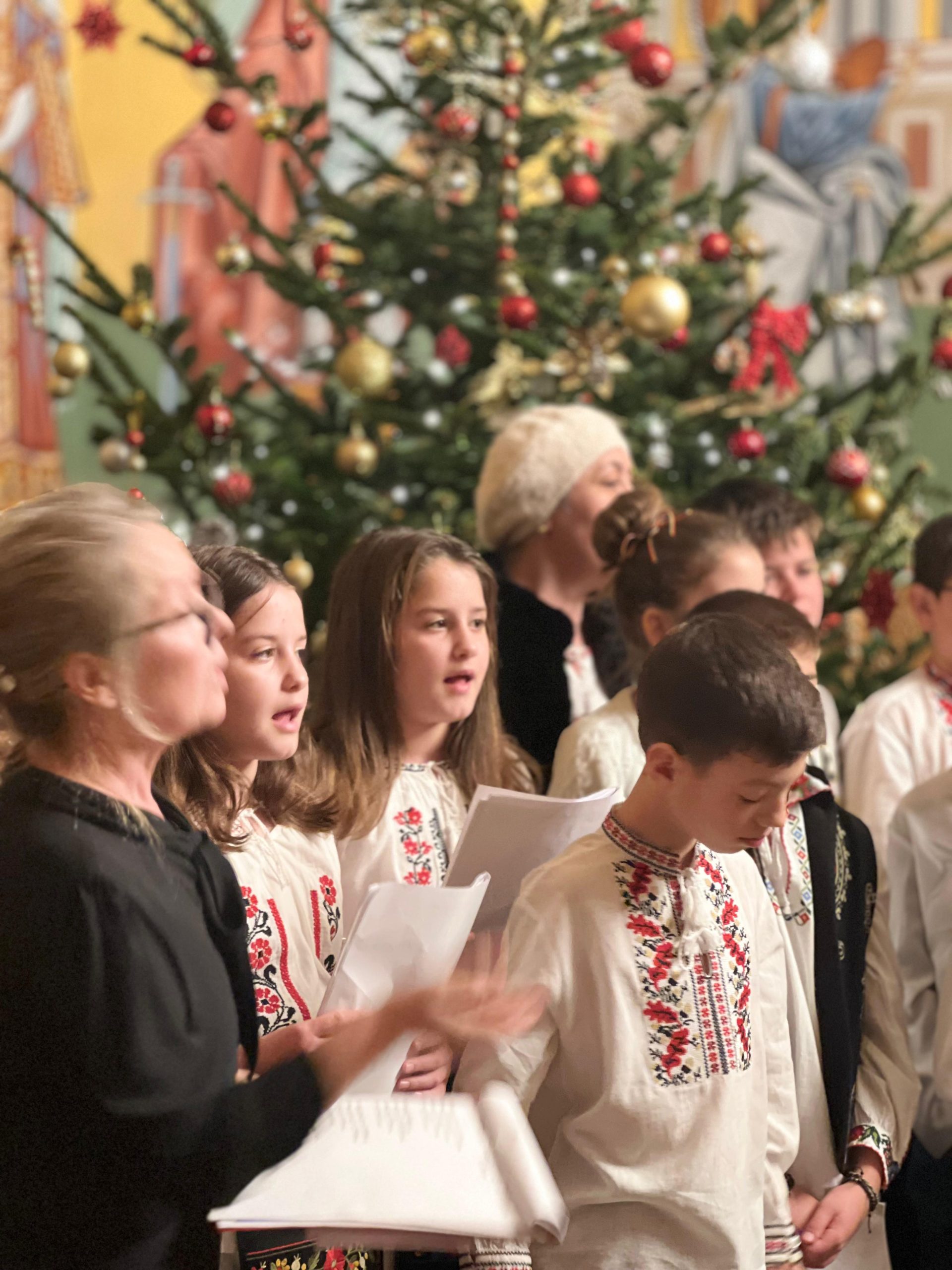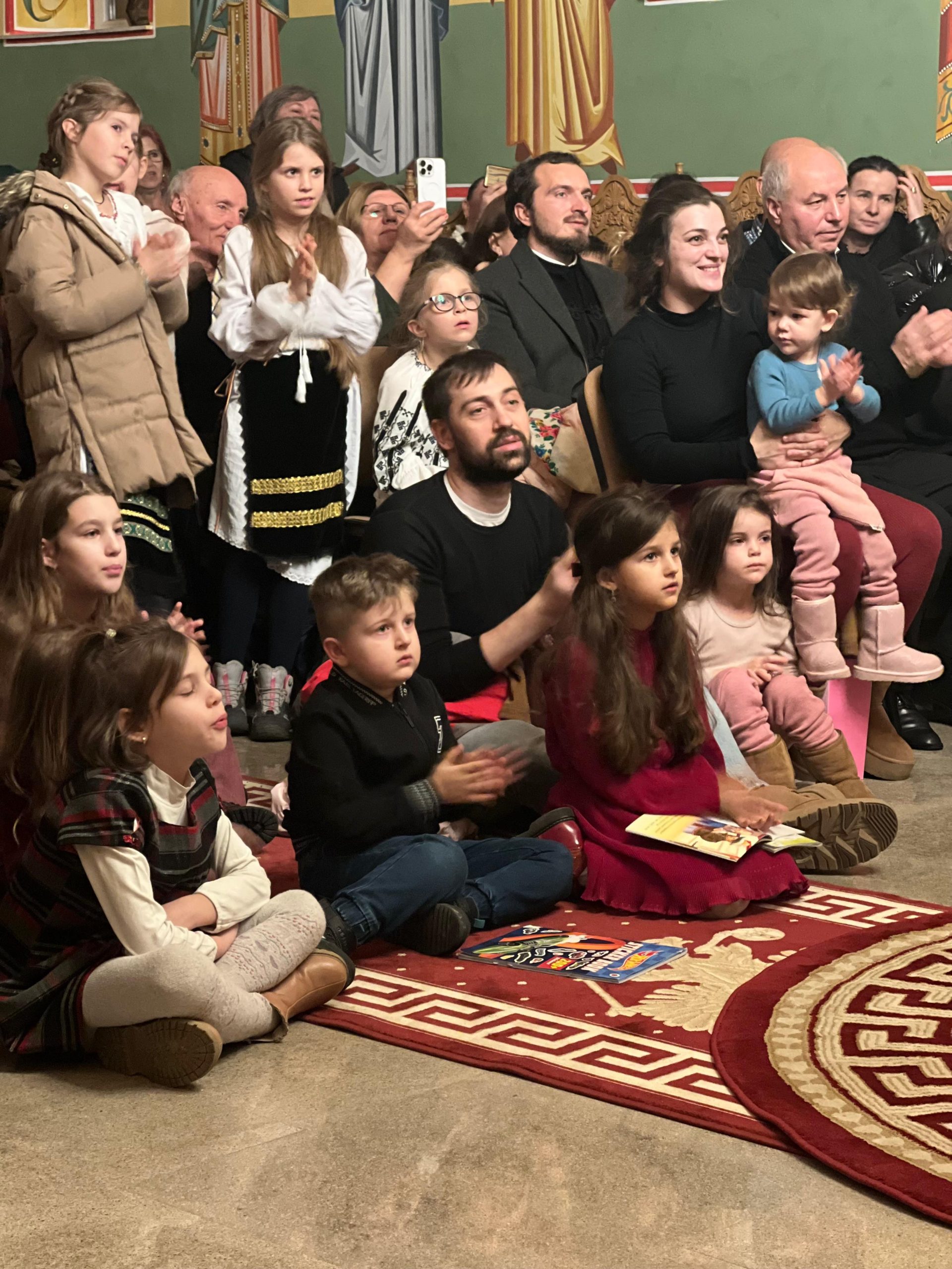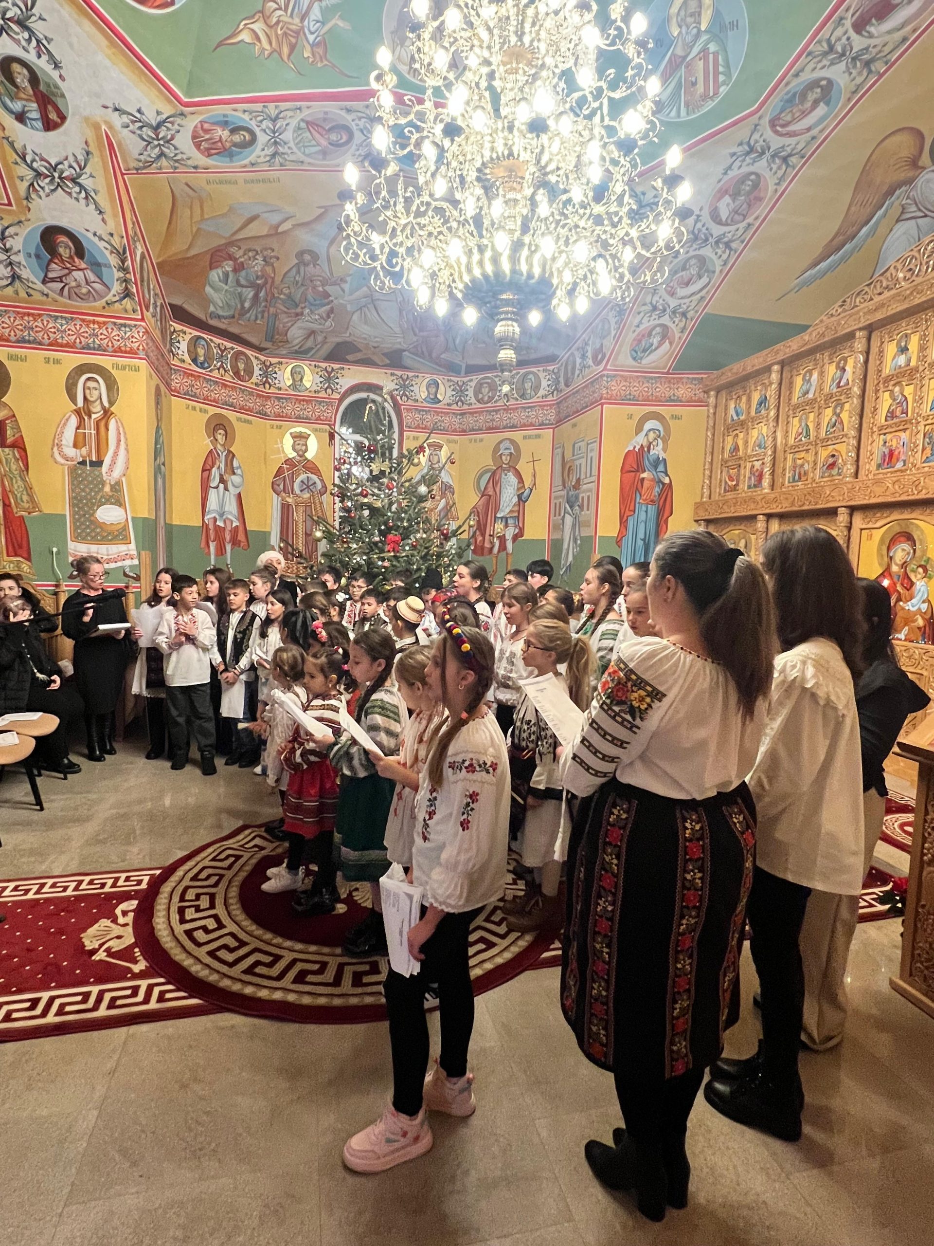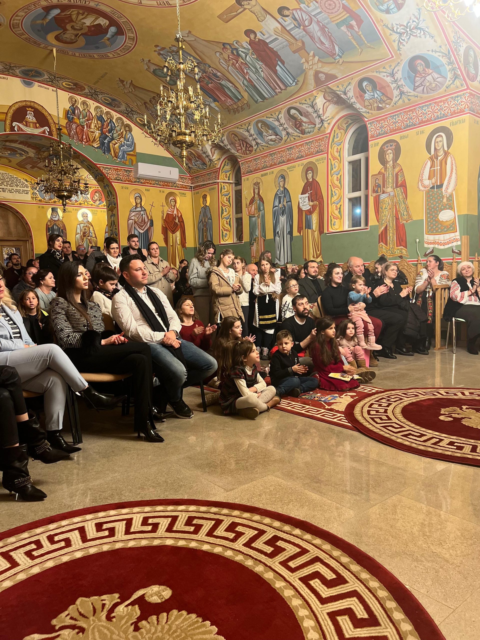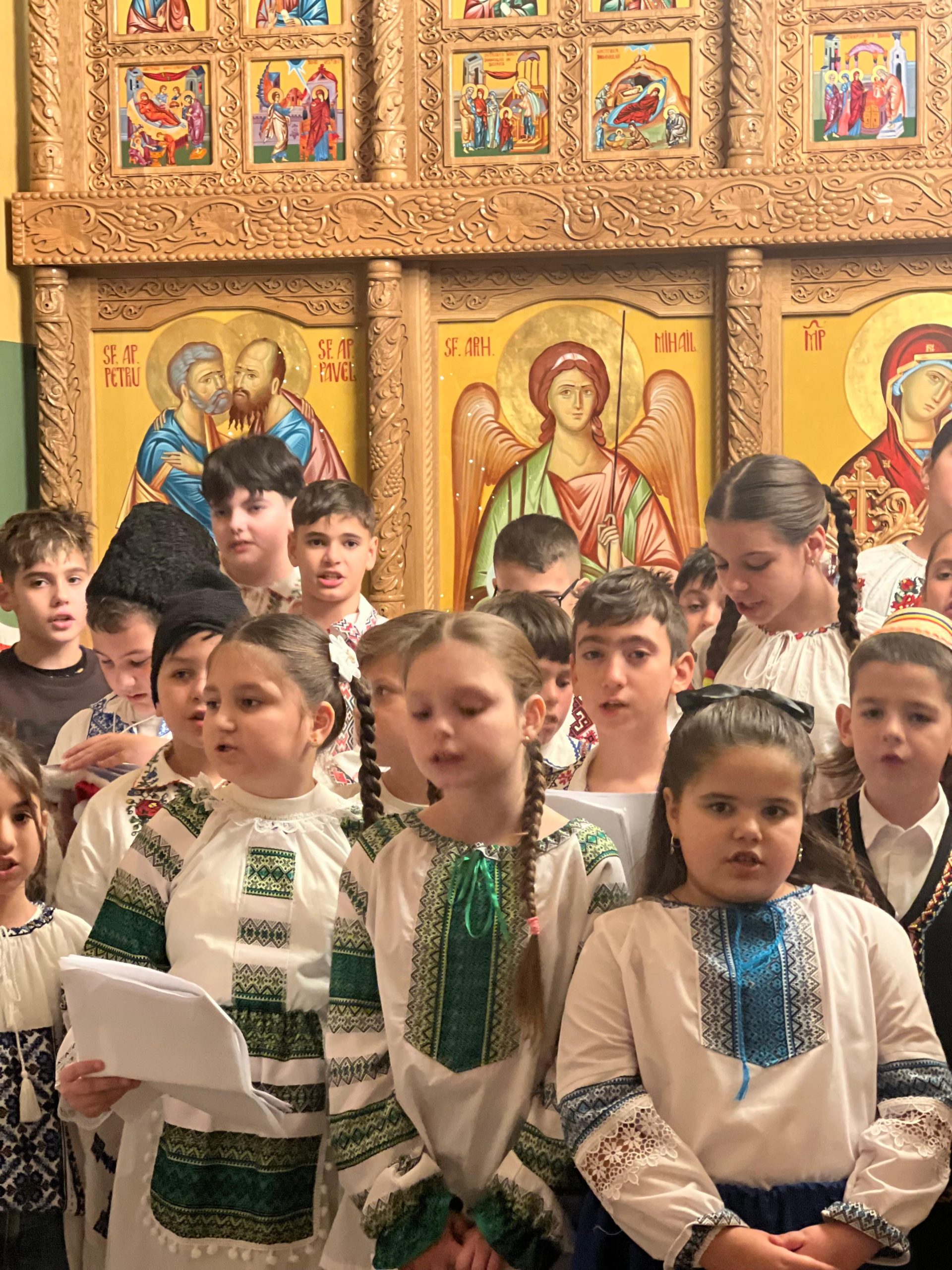 În lumina lină a lumânărilor și în atmosfera caldă, familială, specifică perioadei, credincioșii au simțit bucuria unei seri în care omul și divinitatea s-au întâlnit prin glasuri curate, emoție și rugăciune. Sub păstorirea blândă și jertfelnică a părintelui paroh Daniel Cergan, biserica a fost în acea seară un adevărat adăpost al sufletelor. În seninătatea lăcașului, colindele nu s-au mai auzit numai cu urechea, ci au fost simțite adânc în inimă, ca niște rugăciuni înălțate la Cer. Glasurile copiilor s-au ridicat curate și luminoase, asemenea unor lumânări aprinse, răspândind speranță, pace și acea bucurie simplă care vindecă și apropie oamenii unii de alții. Căci, peste o sută de copii ai Școlii Gimnaziale Nr. 1 din Grădiștea au umplut biserica de viață, emoție și puritate. Cu obrajii îmbujorați și ochii strălucind de emoție, au colindat cu toată sinceritatea sufletelor lor fragede. Cântecele lor au fost fărâme de lumină, versurile devenind mărturisiri curate de credință. În glasurile lor se regăseau copilăria, nădejdea și frumusețea unui Crăciun așa cum ar trebui să fie: simplu, curat și plin de iubire, privit prin ochi nevinovați. În această atmosferă de liniște sfințitoare și înălțare sufletească, Grupul Psaltic TRONOS al Patriarhiei Române a adus o profunzime aparte, asemenea unei respirații adânci a Bisericii însăși. Sub îndrumarea părintelui arhidiacon Mihail Bucă, colindele au fost rostite cu o măiestrie desăvârșită și o trăire care a coborât liniștea peste întreaga biserică. Vocile lor, așezate și puternice, au umplut bolțile de un fior duhovnicesc, iar timpul părea că se oprește, lăsând loc doar rugăciunii cântate și lacrimilor tăcute. A fost acel moment rar în care cuvintele nu mai sunt necesare, pentru că muzica vorbește direct inimii.