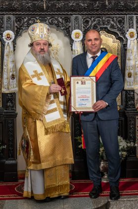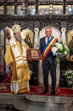 Primirea moaștelor Sfântului Dimitrie este un eveniment care, iată, se scrie pe hârtie, dar mai ales se întipărește în inimile celor prezenți. S-ar putea spune că ziua de sâmbătă, 8 noimebrie, a fost ziua în care Dumnezeu și-a întins mâna peste Afumați, înveșmântând comuna în lumină și pace. A fost ziua în care îngerii au coborât pe pământ și au umplut de frumos biserica. Părintele paroh, cu sufletul plin de recunoștință, a primit acest dar minunat cu smerenie și lacrimi de bucurie, știind că Sfântul Dimitrie va rămâne de acum în mijlocul credincioșilor, nu numai prin rugăciunile înălțate. ”Racla care va adăposti o părticică din cinstitele moaște ale Sfântului Mare Mucenic Dimitrie, Izvorâtorul de Mir a fost realizată la Atelierele Patriarhiei Române, cu măiestrie și aleasă evlavie, spre împodobirea sfântului și spre întărirea credinței credincioșilor”, a spus părintele paroh Florin Ionică. Sfințirea raclei a fost săvârșită de Preasfințitul Părinte Timotei Prahoveanul, Episcop-Vicar al Arhiepiscopiei Bucureștilor înconjurat de un ales sobor de preoți, în frunte cu Părintele Cristian Burcea, Protopopul Protopopiatului Ilfov Nord și părintele paroh, Florin Ionică. Ierarhul a binecuvântat cu acest prilej și baldachinul de lemn care acoperă racla în sfântul lăcaș și a sfințit două icoane cu chipul Sfântului Mare Mucenic Dimitrie și cu cel al Sfântului Ierarh Nectarie de la Eghina. ”Au fost oameni în istoria Bisericii care au simțit lucrarea îngerilor în viața lor și au căutat-o. Erau vremuri când părinții își învățau copiii să se închine la îngerul păzitor și erau istorisiri despre îngeri, nu despre demoni, nu despre întuneric, de aceea copilăria acestor fii ai Bisericii din anumite vremuri a fost mult mai frumoasă pentru că ei petreceau în preajma îngerilor și erau invitați să caute prietenia cu îngerii. Sfântul Ioan Gură de Aur, autorul Liturghiei pe care o săvârșim și care-i poartă numele, ne spune un lucru de o frumusețe covârșitoare, pe care slujitorii Bisericii îl rostesc la fiecare Liturghie, în taină. Aceste cuvinte se așază în fiecare duminică, zi de sărbătoare, întru cinstirea lui Dumnezeu, Care e slăvit de îngeri”, a spus Preasfințitul Părinte Timotei Prahoveanul. Preasfinția Sa a venit încărcat cu daruri pentru cei ce s-au ostenit ca acest eveniment să mai scrie o filă din istoria comunei Afumați și a oferit Ordinul ”Sfinții Împărați Constantin și Elena” părintelui paroh Florin Ionică. De asemenea, Ordinul mitropolitan ”Sfântul Ierarh Neofit Cretanul” i l-a înmânat părintelui coslujitor Cristian Alexandru. Primarului Gabriel Dumănică i-a oferit Ordinul ”Sfinții Martiri Brâncoveni”. Însă numărul celor care au primit diplome și distincții este mult mai mare. Ca de fiecare dată, primarul, împreună cu clericii și credincioșii, au stat umăr la umăr, într-o comuniune care a unit inimile într-un singur duh al dragostei. Pentru că acolo unde este dragoste, acolo este Dumnezeu. ”Anul acesta comuna Afumați a împlinit frumoasa vârstă de 515 ani de la atestarea documentară (1510 – 2025) fiind cea mai veche localitate din această parte a regiunii București – Ilfov, lucru cu care noi, afumățenii, ne mâdrim. În centrul acestei istorii se află domnitorul Țării Românești, Radu de la Afumați, ce a domnit între anii 1522 – 1529. Participăm astăzi, cu mare bucurie la acest eveniment unic și istoric în localitatea noastră, aducerea unui fragment din sfintele moaște ale Sfântului Mare Mucenic Dimitrie, Izvorâtorul de Mir din orașul Thesalonic, Grecia, cu înalta binecuvântare a Preaferictului Părinte Patriarh Daniel, și așezarea lor în biserica noastră pentru totdeauna. Acest moment solemn de astăzi, se adaugă celor anterioare. În anul 2016, pe 28 februarie, a avut loc resfințirea bisericii noi a Parohiei Afumați II. Preafericirea Sa, Patriarhul României a sfințit atunci pictura murală precum și lucrările de reabilitare, restaurare, conservare și înfrumusețare. În 2019, un fragment din sfintele moaște ale Sfântului Ierarh Nectarie, mare făcător de minuni a fost adus, de asemenea, pentru totdeauna, în această parohie”, a spus primarul Gabriel Dumănică.