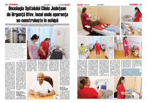 În acest context, Compartimentul de oncologie medicală al Spitalului Clinic Județean de Urgență Ilfov se conturează ca un exemplu de funcționare integrată și eficientă a unui sistem care pune pacientul în centrul atenției. Organizată pe toate cele trei palierele esențiale – ambulator, spitalizare de zi și internare continuă – secția, care este condus de dr. Berghea Roxana, are 15 paturi și este deservită de doi medici oncologi (alături de șefa de secție o găsim aici și pe dr. Nica Nicoleta), opt asistente, cinci infirmiere și un brancardier, oferă pacientului toate serviciile medicale decontate de Casa de Sănătate, într-un timp mai scurt, ceea ce reprezintă un aspect încă rar întâlnit în alte unități medicale din București.