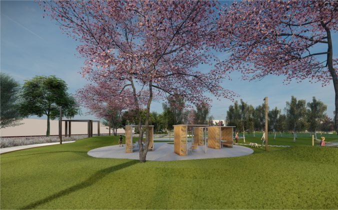 Cele mai bune soluții identificate de proiectant pentru realizarea acestui parc integrează amenajarea funcțională și peisageră a unor zone de interacțiune socială care să includă peisaje inedite într-un habitat urban și amenajarea cu toate dotările și echipamentele necesare (mobilier urban, sistem de irigații, iuminat public etc.) A fost gândită realizarea unei zonificări funcționale pentru echipamentele și construcțiile necesare (alei, locuri de odihnă, terenuri de joacă, locuri pentru activități sportive). Astfel, zona cu platforme va fi formată dintr-o înșiruire de insule finisate cu pietriș, pe care sunt amplasate mai multe elemente de mobilier urban de tip hamac cu rol de odihnă și socializare pentru vizitatori. Apoi, pentru a fi accesibil tuturor categoriilor de vârstă ale utilizatorilor, parcul va avea o subzonă cu mobilier urban de tip pergolă/mici spații acoperite ca suport pentru diverse activități: șah, picnic, odihnă, socializare etc. Zona cu foișoare a fost gândită a se realiza, de asemenea, dintr-o insulă circulară cu pietriș, pe care sunt amplasate mai multe elemente de mobilier urban de tip foișor.