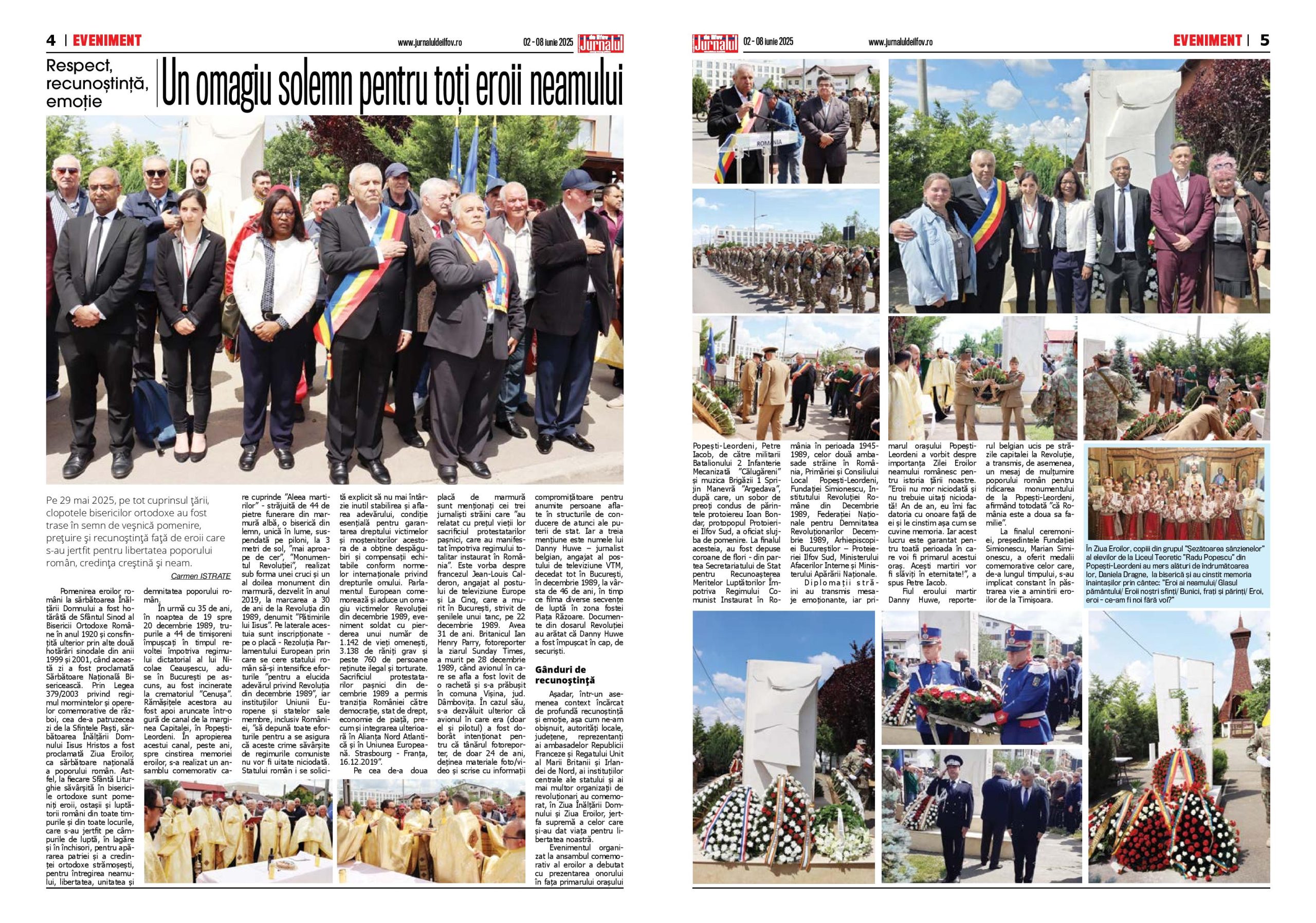 Pe 29 mai 2025, pe tot cuprinsul țării, clopotele bisericilor ortodoxe au fost trase în semn de veșnică pomenire, prețuire și recunoştinţă faţă de eroii care s-au jertfit pentru libertatea poporului român, credinţa creștină şi neam.