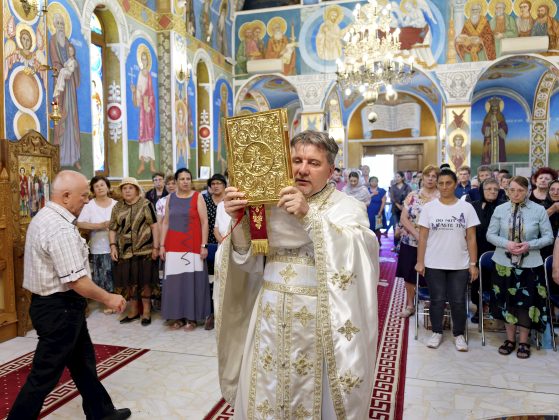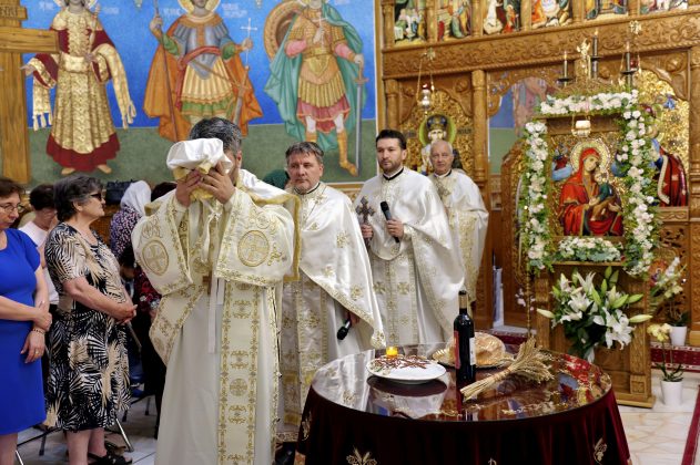 Strălucind în soarele cald al verii, lăcașul de cult și-a deschis larg porțile pentru credincioșii veniți cu sufletul pregătit de sărbătoare, purtând în priviri nădejde, iar în inimi bucurie. Rândurile de oameni, de la cei mai vârstnici până la copilași de-o șchioapă, au creat o adevărată familie duhovnicească adunată în jurul Altarului, într-o unitate sufletească rară și binecuvântată. Sfinții Apostoli Petru și Pavel, ocrotitorii bisericii din Chiajna, sunt simboluri ale puterii credinței, ale transformării prin iubire și ale prieteniei care vindecă și unește. Poate de aceea, icoana care îi înfățișează îmbrățișați este una dintre cele mai emoționante imagini ale Bisericii Ortodoxe, o îmbrățișare care străbate veacurile și care ne cheamă, și astăzi, să fim mai buni, mai împăcați, mai aproape unii de alții. Această imagine sacră s-a regăsit în toată atmosfera hramului, de la slujba săvârșită cu deosebită trăire de părintele paroh Cristian Vasile împreună cu preoții slujitori, la rugăciunile rostite la unison de clerici și credincioși, lacrimile tăcute ale celor ce au venit să-și aline sufletul, dar și zâmbetele celor ce au regăsit liniștea. Părintele Romică Macovei, fostul Protopop al Protopopiatului Ilfov Sud a fost, și de data aceasta, cu sufletul și cu prezența fizică în mijlocul clericilor și credincioșilor parohiei.